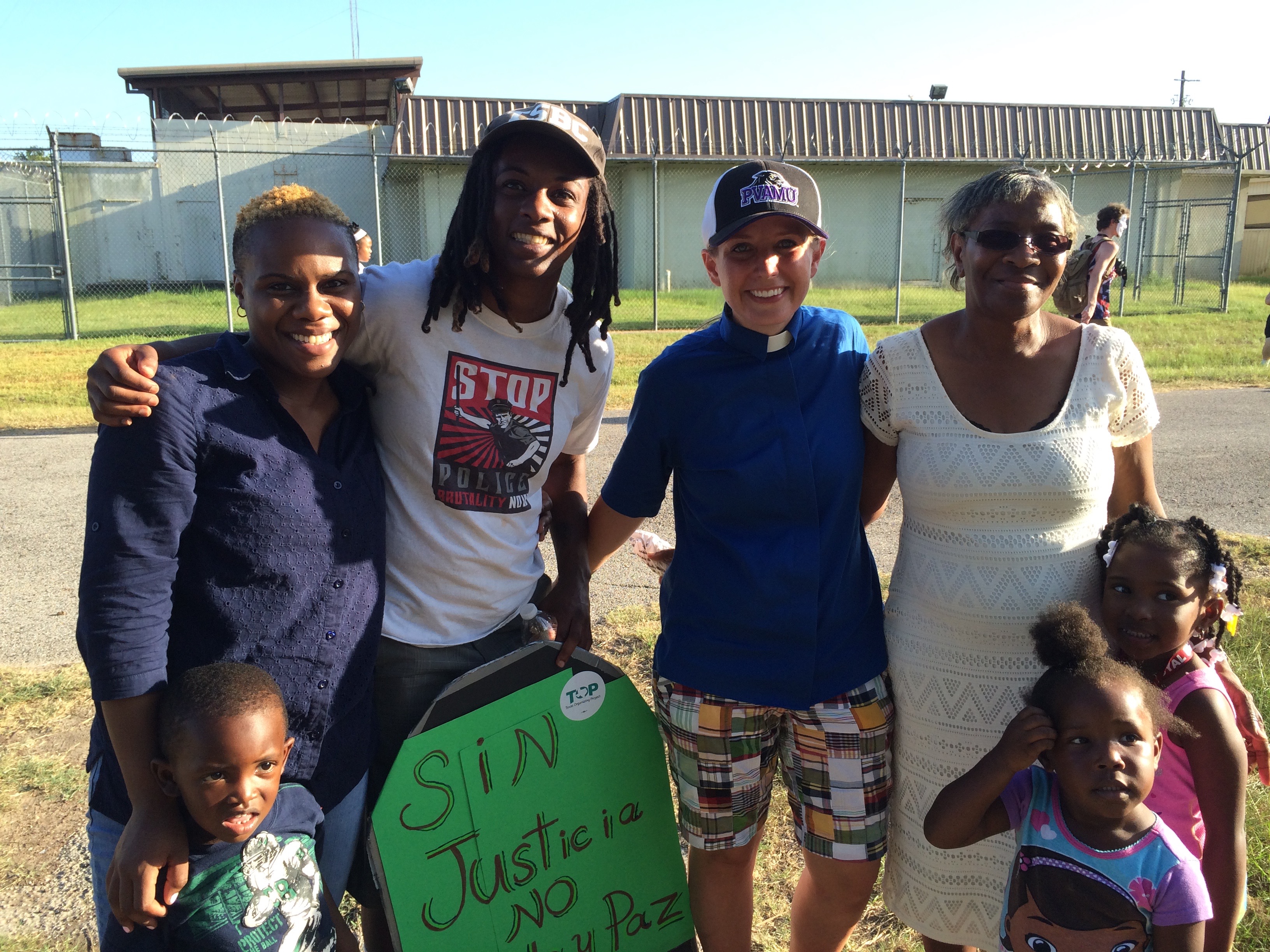 Having become one of the most recognizable people at the Waller County Jail after 26 days of sitting vigil, my friends experienced several minutes of terror as I seemed to have disappeared in the midst of the confusion. They did not know that I was standing further back with my body planted between those five sets of eyes and the County Jail.